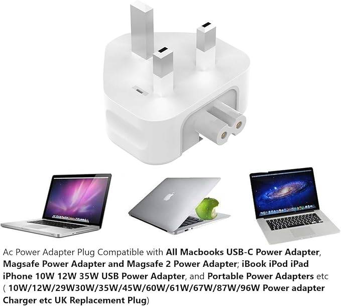 This adapter is compatible with various Apple power adapters, including USB-C, MagSafe, and MagSafe 2 models. It compatible 10W, 12W, 30W, 35W, 45W, 61W, 85W, and 96W power adapters. making it suitable for most Apple devices. The global voltage compatibility makes it an excellent choice for travellers.